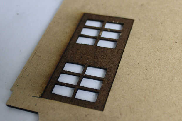 Ahora vamos a construir la Tardis. Todo lo que es de color rojo tiene que ser grabado. Decidí grabar un área en la parte posterior de los paneles laterales, para adaptarse mejor a las ventanas.