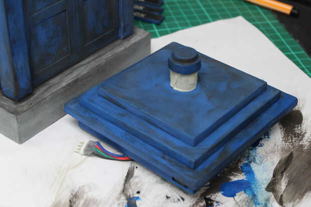 Una vez que terminé de construir la Tardis, decidí que parecía aburrido. Así envejecido con pigmentos Vallejo, que se pueden llegar aquí y pigmento aglutinante que puede obtener aquí. Luego debe aplicar una capa de capa clara.
