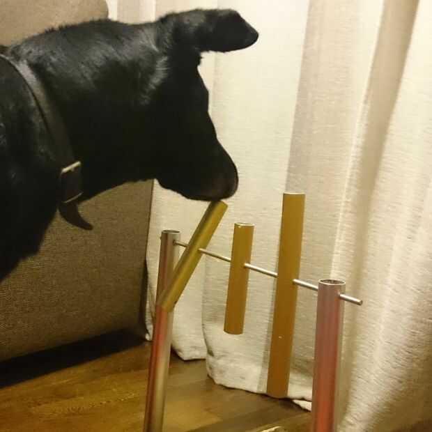 El perro tiene que entregar los vasos para llegar a las delicias.