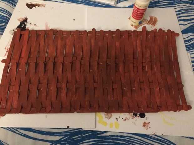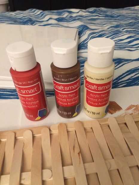 Mezclar el rojo y pinturas acrílicas marrón para dar la madera pega un final agradable.