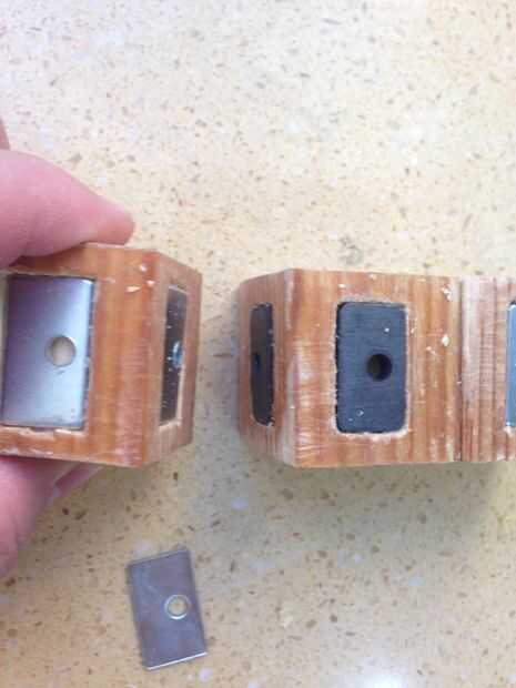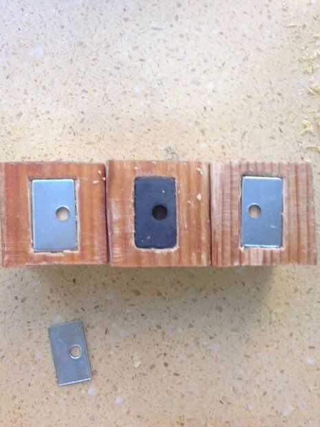 Entonces mi amigo me sugirió utilizar metales de cerradura del armario junto con imanes.