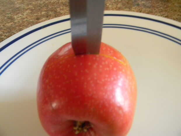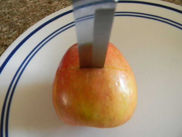 Con el cuchillo trinche apple en una corte y arrastre dos otro corte del cuchillo. Repita en el otro lado.