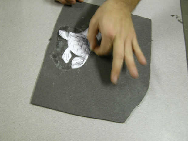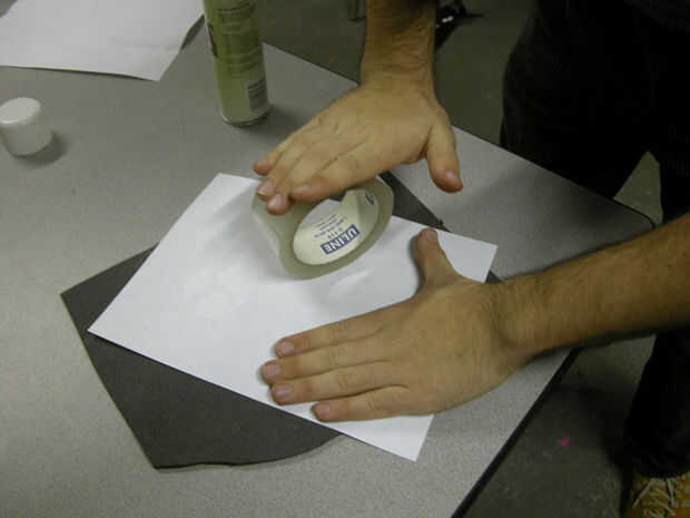 Acaba de describir cómo adjuntar una pieza única para el respaldo de espuma, pero probablemente va a querer realizar estos pasos en varios pedazos en un momento. Nota que las piezas no tienen que ser dispuestos en formación de rompecabezas: es decir los fragmentos del rompecabezas no tienen que tocar, o incluso cerca uno del otro, para el caso; sólo les golpee allí.