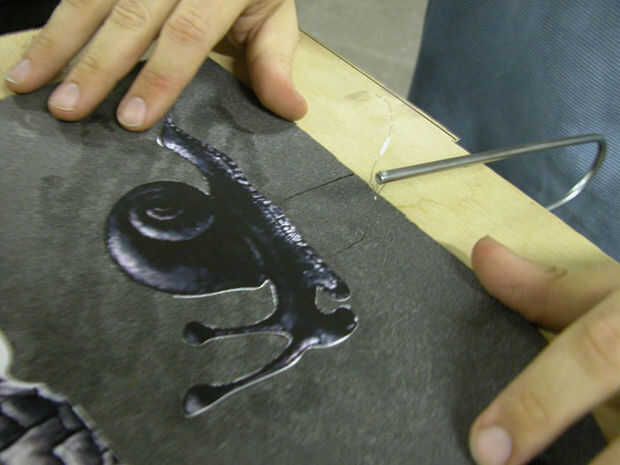 Guía del cortador de alambre a través de la espuma de poliestireno en un paciente pero constante ritmo, trazar las formas de papel. La espuma debe resistir, pero cortar suavemente. No parada o la espuma derretirá.  Me parece que una forma de "apoyo a nuestras tropas" es mejor para negociar esquinas filosas.  Utilice un ventilador para controlar la ventilación, sin duda todo esto no fuera o cerca de una ventana abierta. No decir los humos son tóxicos, pero también no diría que no son no tóxicos, así que ten cuidado.