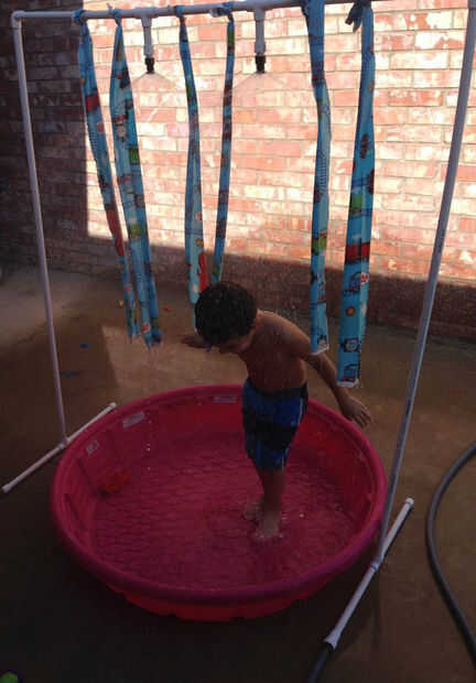 También hemos añadido un chapoteadero en la colada de coche para coger el agua. Se advirtió que caminar dentro y fuera de la piscina es un riesgo de tropiezo, y tuvimos una caída el día de hoy. Después de unos minutos de calma, fue lo suficientemente valiente para ir otra vez y volvió a tener una explosión.