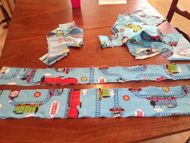 Para hacer esto en un verdadero "lavado" añadimos unas tiras de tela como los paños de limpieza (mi hijo llama moppies).