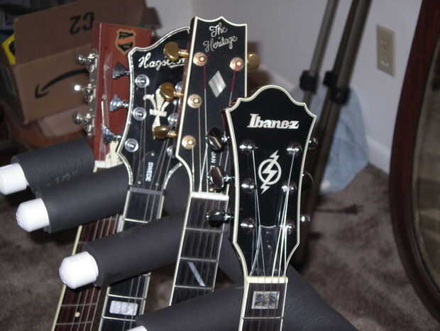 un stand sencillo y barato para una o más guitarras. Toma tal vez dos horas para construir.