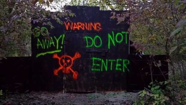 Una pareja rápidos capas de pintura negra, algunas pintadas de aerosol de neón y una luz estroboscópica añade un poco de un aspecto terrorífico a la entrada del túnel.