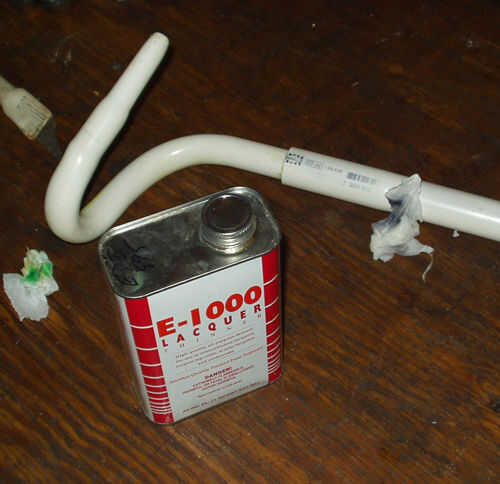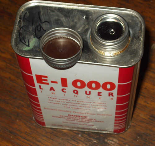No son buenas respirar vapores de diluyente de laca. Asegúrese de que tener buena ventilación. Sólo una pequeña cantidad de diluyente es necesario mojar el taco de papel higiénico. Asomó un pequeño agujero en el enchufe de debajo de la tapa cuando compré el nuevo puede, en vez de quitar el tapón entero. Así, sólo haz el diluyente necesario y liberar la cantidad mínima de vapores en el aire.