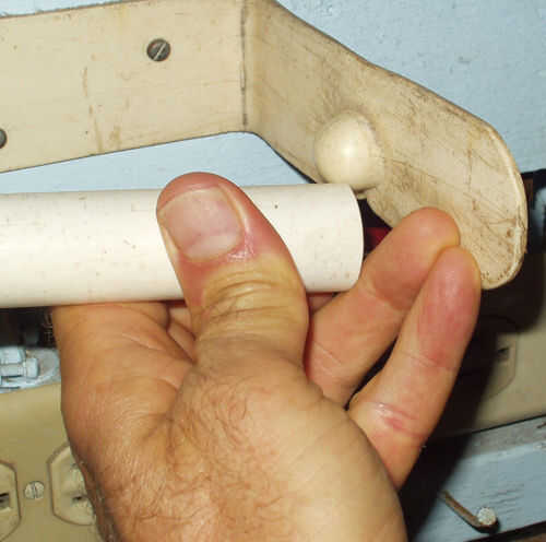 Un molde es una forma que se utiliza para crear otra forma. En el caso del titular de rollo de papel higiénico que se muestra a continuación, el orificio en el extremo de la tubería central sirvió como la parte "hembra" del molde. La bola de un martillo de bola sirve como la parte "masculina" del molde. Entre los dos de ellos, forzaron el plano plástico en forma de cúpula. Cuando el PVC se refrescó, endureció otra vez.