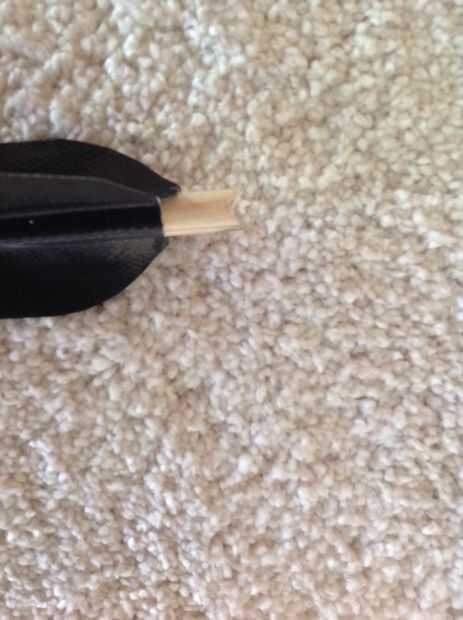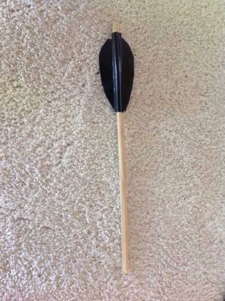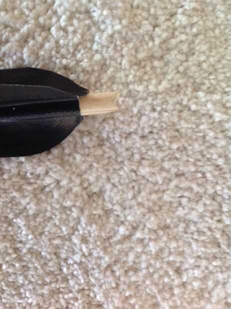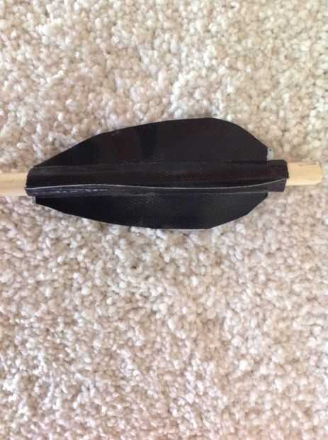Los ejes son pino tacos encerados con beeswax.fletchings están hechos de punto de tape.the conducto es embotado en perforar un agujero y luego pegué clavos en them.i también añade una ranura para la cadena de retener.