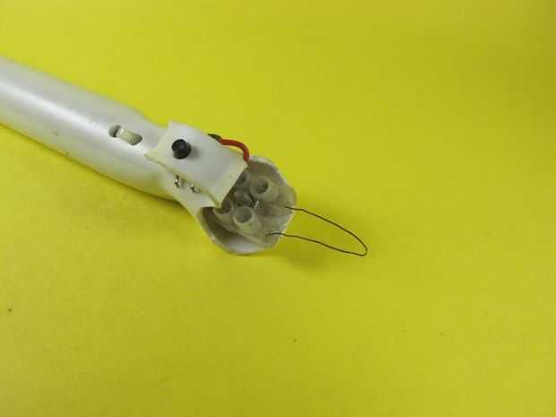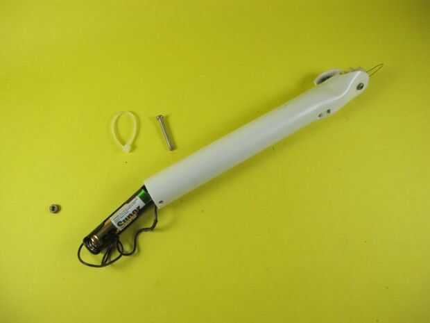 el nylon ATE en el tope delantero del soporte de pilas y el tornillo en la cola hacer un anillo para colgar en la barra de herramientas.
