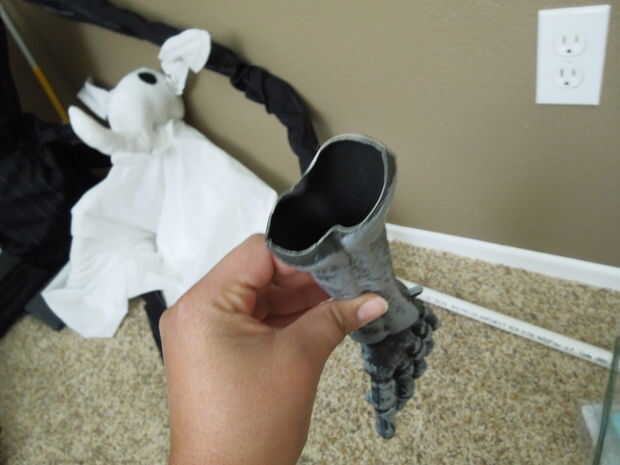 Oh casi lo olvido tengo mis manos de esqueleto de la tienda de halloween para como 6 dólares que corte causa la mitad me di cuenta el sostén esqueleto plástico era hueco interior así que simplemente deslícela hacia la parte del brazo de pvc. y no funcionó perfectamente pegamento necesitada! impresionante!