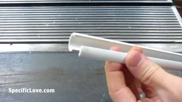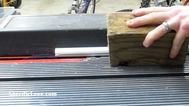 Tomé un largo trozo de PVC de 1/2 pulgada y utiliza una sierra de mesa para cortar longitudinalmente.