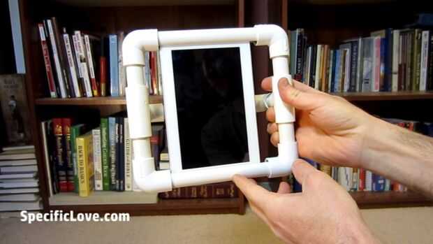 Luego hacer un cuadrado alrededor de la tableta usando el corte tubo y los codos. Asegúrese de que ha incluido los conectores en T en los lados de la Plaza mirando hacia atrás.