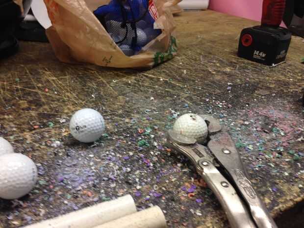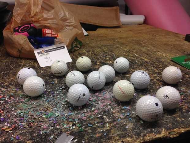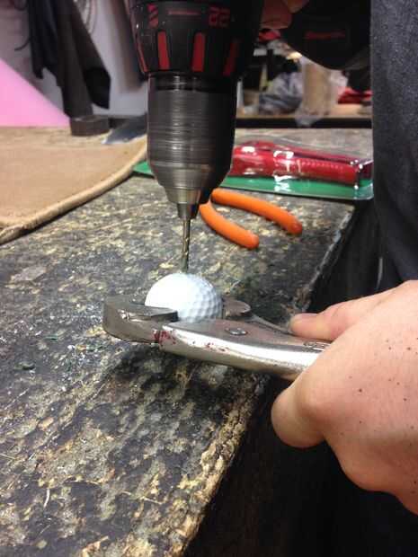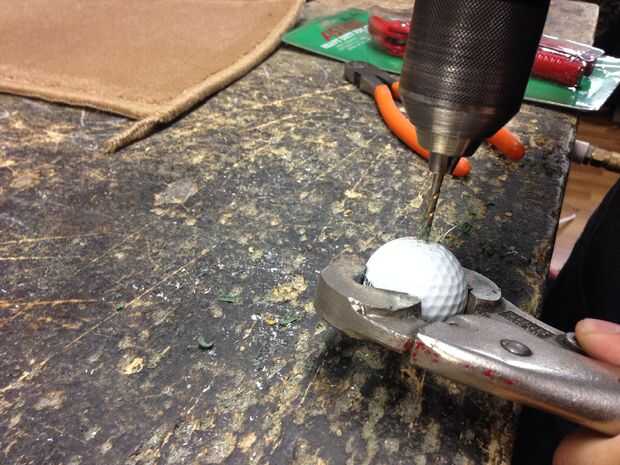 4. después de todo se hacen los agujeros en la toma de bola de golf una maquinilla de afeitar para limpiar a la izquierda sobre las piezas.