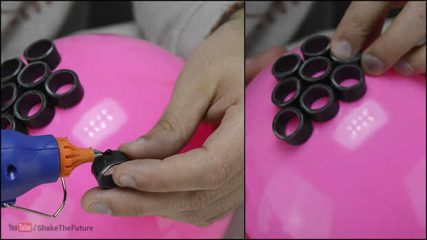 Luego pegué el resto de los anillos entre sí, pero no a la bola.