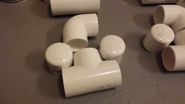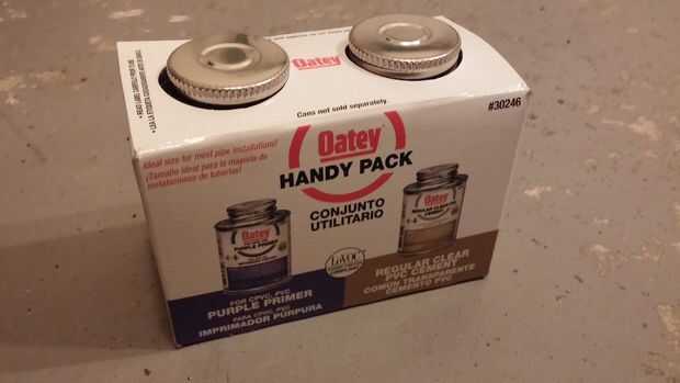 PVC puede ser enlazado permanentemente con solvente de PVC y cemento. Se trata de una mezcla de dos partes que consta de un primer y cemento. Lo encontrará en cualquier tienda de mejoras para el hogar junto al PVC sí mismo. A menudo puede encontrar pequeños paquetes como se muestra en las fotos, pero si no, asegúrese de que usted compra una lata de cada parte de la mezcla. Con el tiempo el cemento de PVC puede endurecerse o quedar inutilizable para comprobarlo antes de empezar a trabajar. Si es pegajosa o clumpy, entonces necesitará reemplazarlo. Ya tenía solventes y cemento, pero había sido un tiempo desde mi último proyecto y de hecho habían ido mal y necesita reemplazar. Nota: La cartilla de PVC es generalmente púrpura para indicar donde se ha aplicado (a menudo requerido por código para trabajos de fontanería), pero también se puede comprar cartilla claro. Si no va a pintar o cubrir su parallettes, quizá quieras considerar primer claro si no tienes algunas manchas púrpura visibles sobre ellos más adelante.