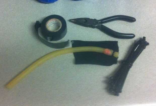 No es necesario pero también envuelve el extremo de mi tubo con tela y había asegurado con cinta de empalme de goma. Esto pretende ser un guardia de matorral para la tubería para evitar fallas debido a tubo rasgándose.