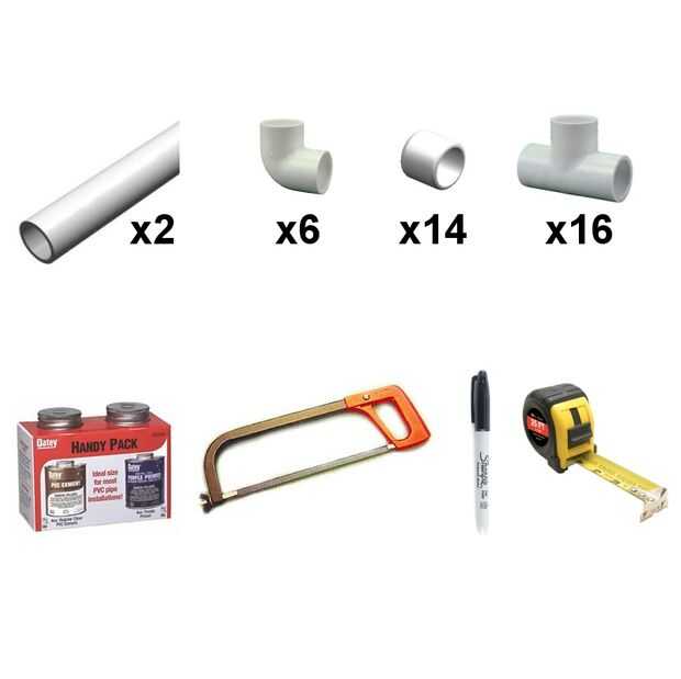 Usted debe ser capaz de recoger todos estos artículos en su tienda de hogar. La cartilla del cemento del PVC se pueden comprar generalmente como un conjunto en la mayoría de tiendas de mejoras para el hogar. Los conectores de PVC pueden comprarse individualmente o en los bolsos del contratista, que le ahorrará un poco de dinero.