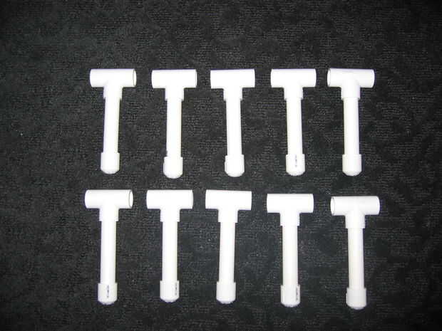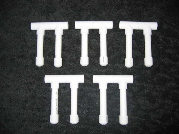 Armar cada pieza como se muestra (cuadro 1). Una vez 10 piezas, par de ellos arriba y conectan cada pieza del par a la otra usando una 1 1/2" pieza (cuadro 2). Debe tener 5 titulares cuando termine (cuadro 3).