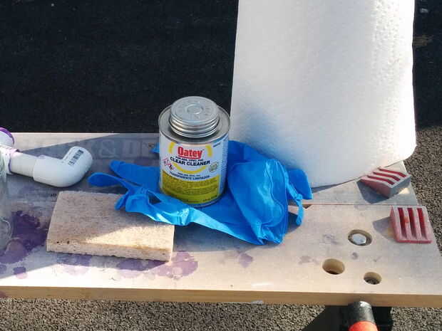 Esto probablemente debe haber venido antes pegado. La próxima vez lo haré en ese orden. La aspiradora es casi tan desagradable como el cemento, por lo que utilizar guantes y gafas de seguridad otra vez. Hizo un buen trabajo de tomar la mayoría de las marcas de la PVC, excepto algunos puntos donde sospecho que una gota de solvente tiene sobre la marca y endurecido allí. La cartilla púrpura sobre todo parecía inmune a la aspiradora.