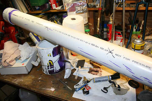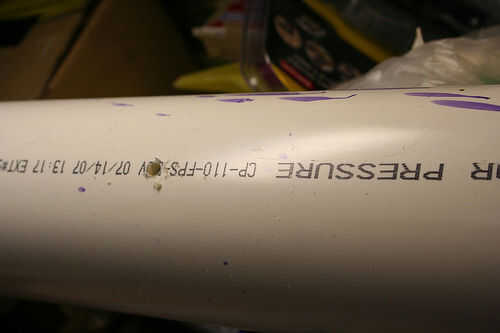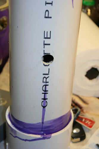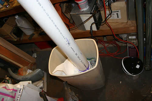 Taladre los orificios en un bote de basura, como el PVC hace un montón de lío de 2 pequeños agujeros.