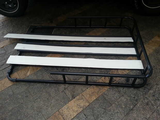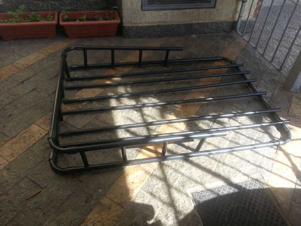 Que también tenía un problema, sería un verdadero dolor para mantenerlo una vez que no está en uso debido a su volumen y tiene un uso limitado. Con esto en mente tuve que tomar un enfoque diferente. Compré una bolsa de equipaje resistente al agua con más o menos el tamaño de la cubierta del coche y con una capacidad de alrededor de 120 litros (casi un 50% el tamaño de mi tronco) (http://www.gama4x4.com.br-... para aproximadamente 50 bucks nuevo (R$ 100) además del factor precio tenía la ventaja de ser muy fácil de guardar pero ahora tuve que atar el techo de alguna manera.