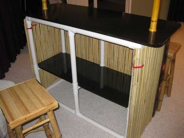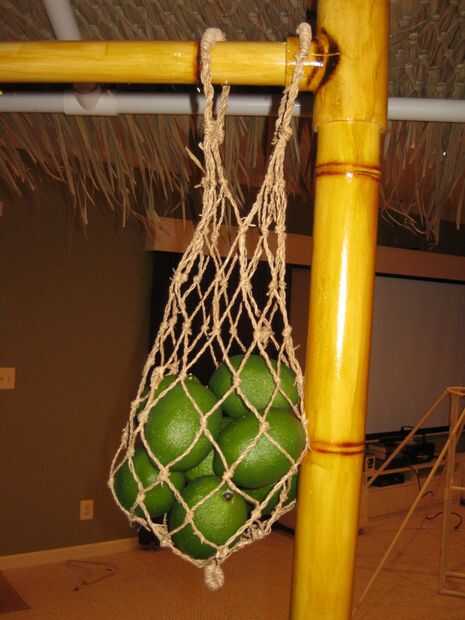 Acaban de agregar una barra a la parte superior de la cubierta en imitación bambú después, utilizar esta caída patio de luces en una opción fácil para agregar el uso de dos t adicional de PVC y tubo de PVC un poco más. Encontrado algunos red vieja y falsas limones y limas para agregar algunos detalles adicionales.
