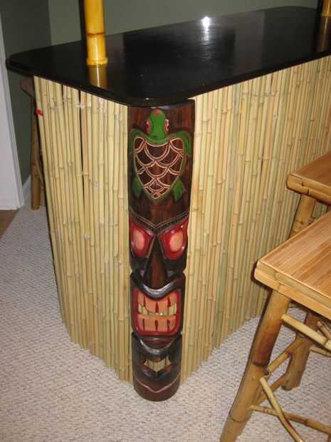 Une las tiras de velcro a la parte de atrás de las máscaras Tiki en la parte superior e inferior con un poco de pegamento y pistola de grapas, luego funcionó el velcro a través de la cerca de bambú y alrededor del poste de PVC para sostenerlas firmemente a la barra. Elegí estos dos a un http://www.things2die4.com como lo han hecho varios que son 39 pulgadas de alto y caben perfectamente.