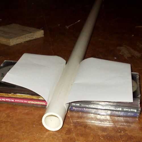 he utilizado un trozo de papel para sustituir el PVC mientras que visualiza cómo grande un pedazo de plástico que necesitaba. La altura de una pila de cuatro CD era acerca de la profundidad en la prensa que quería el tubo para descansar. El plástico tenía que ser lo suficientemente largo para permitir y lo suficientemente amplia como para cubrir las mordazas y dejar algún material extra de lengüetas doblar hacia abajo más tarde.