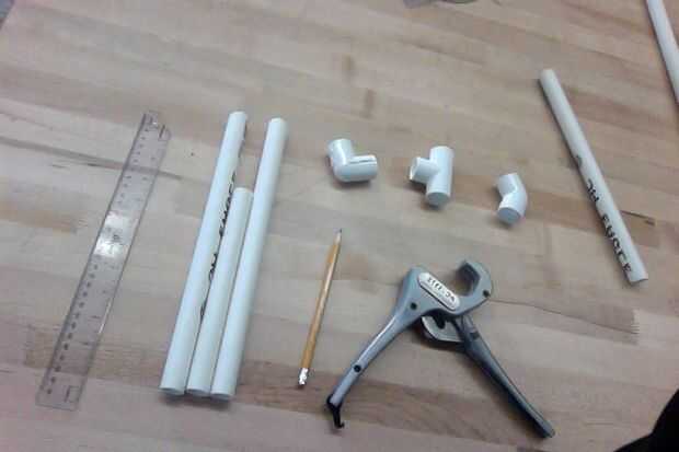 Vas a necesitar tubería PVC, conectores de PVC (codo de 90 grados, codo de 45 grados y una T), una regla, un cortador de PVC y un lápiz!