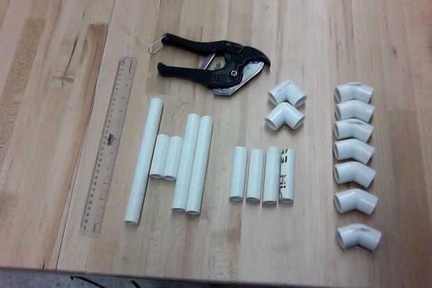 -regla -siete conectores de 45 grados PVC -dos conectores de PVC de 90 grados -3 cinco en tubos de PVC -6 dos en tubos de PVC -2.5 dos en tubos de PVC -un 8 en tubo de PVC