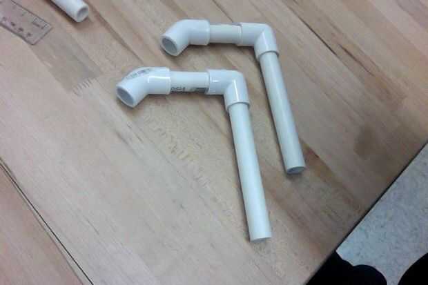 a continuación, tomar dos conectores de 45 grados y en los extremos de los dos 2.5 en tubos de PVC