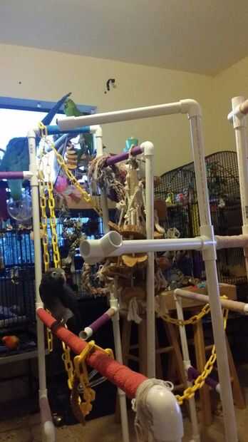 Así que tengo 11 aves que van en tamaño de una ciruela habían dirigido Perico a una guacamaya azul y oro. Todos ellos interactúan aceptablemente algunos amigos incluso sin embargo siempre es recreo supervisado. Así que vi el gimnasio de juego en un lugar local del animal doméstico y el precio era escandaloso. Así que me hice uno. Lentamente están explorando con precaución y no estoy totalmente hecho todavía. Plan a seguir hacerlo crecer y más colorido e interactivo.