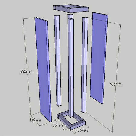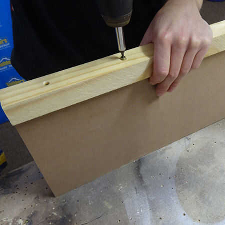 2. para sujetar los postes de pino PAR a los paneles laterales, mida y Marque a lo largo de los perfiles verticales y paneles laterales de la perforación 4 mm avellanados agujeros. Coloque los montantes centralmente sobre el borde de los paneles laterales y fije en su lugar. Repetir este proceso para colocar un soporte vertical hasta el borde anterior y posterior de los paneles laterales.