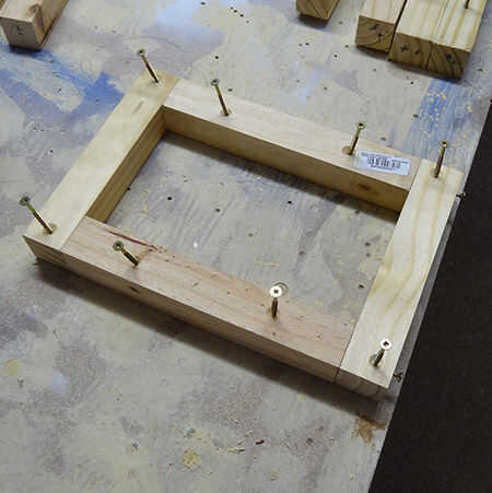1. hacer la parte superior e inferior uniendo el frente y lado pino PAR como se muestra.