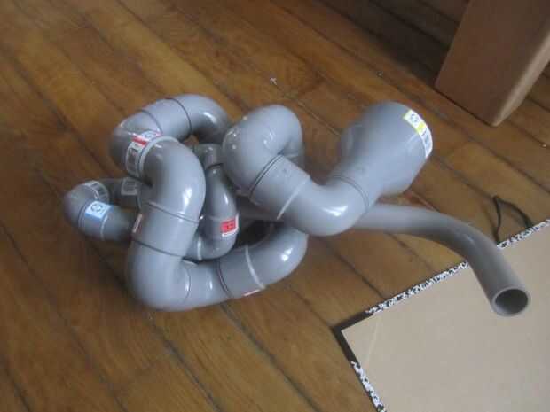 Paso B. comienzo con el PVC "fregadero final forma de codo asimétrica ", esta parte será el