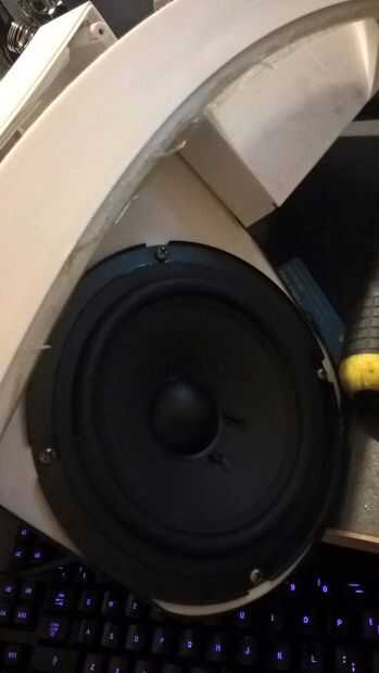 Aquí usted encontrará el altavoz de gama media/baja y el cableado a los conectores traseros.