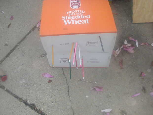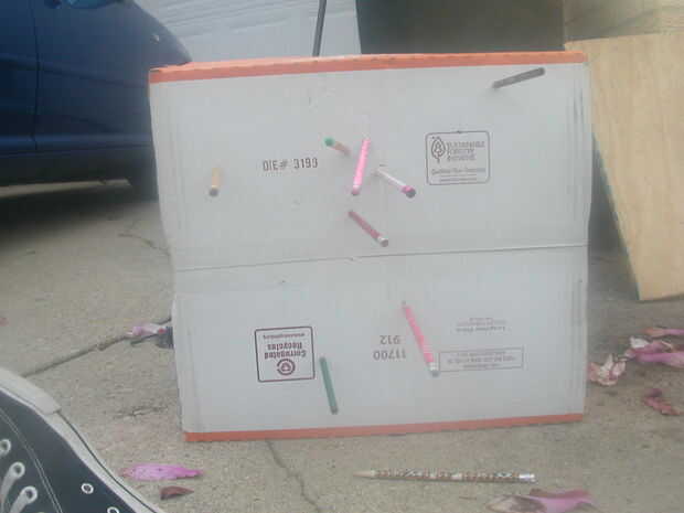 Esta es una fotografía de la secuela del mí tirar lápices en esta caja de cartón en cerca de 10 pies