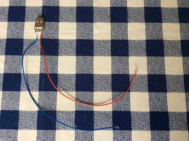 Para obtener la impresora funcione debe tener una fuente de alimentación que proporciona 5-9 voltios y amperios por lo menos dos. Un cable USB es perfecto para esto, puede pelar un cable USB y usar las líneas de energía o usted puede soldar dos cables al final de un conector USB como se muestra en las imágenes anteriores. Como alternativa una fuente de alimentación superior de Banco también funciona bien.