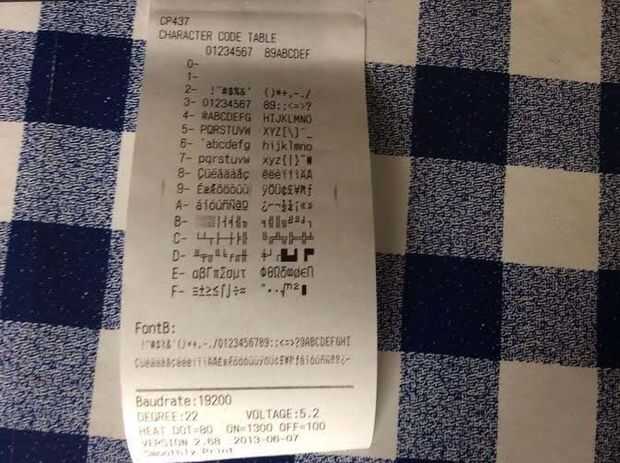 Si en cambio se ve CP437 se imprime continuamente (hasta que dejas de presionar el botón), no se trata de un mensaje de error pero indican que no hay suficiente energía. Si encuentra este problema necesita encontrar una fuente de energía que puede proporcionar más actual.