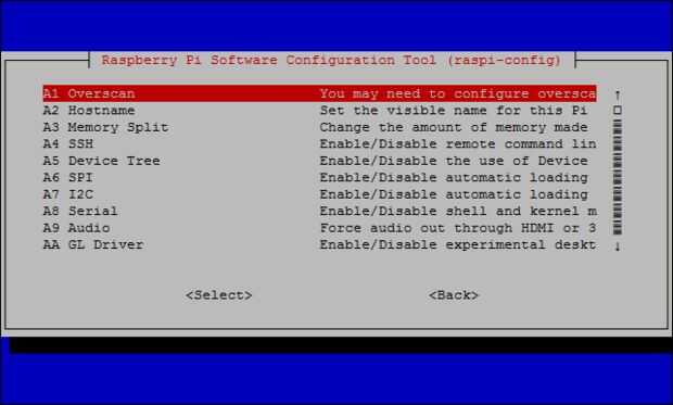 - Selecciona "Split de memoria", memoria de la Pi es compartida entre la CPU y la GPU. Ya que usaremos el Pi sin una pantalla no queremos la GPU tomando demasiada memoria, para que cuando se les preguntó la cantidad de memoria la GPU debe haber entre 8. Este es el menor valor se dejó la GPU tienen. La memoria restante se asignará automáticamente a la CPU.