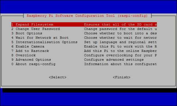 Poner la tarjeta SD en la Raspberry Pi, conecte un teclado, un ratón y una pantalla y encender el Pi. En la última versión de Raspbian registra en automáticamente por primera vez, aunque si su uso de una versión anterior o ya has logueado puede pedirle un nombre de usuario y contraseña. El nombre de usuario por defecto es pi y la contraseña predeterminada es frambuesa. Si tu Pi no se inicia automáticamente al tipo de escritorio: