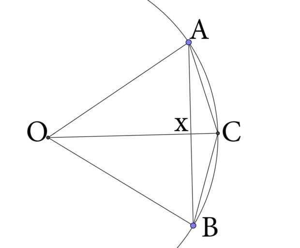 Vamos a considerar un polígono dibujado dentro de un círculo de radio 1, por lo que la longitud de las líneas OA, OB y OC = 1.
