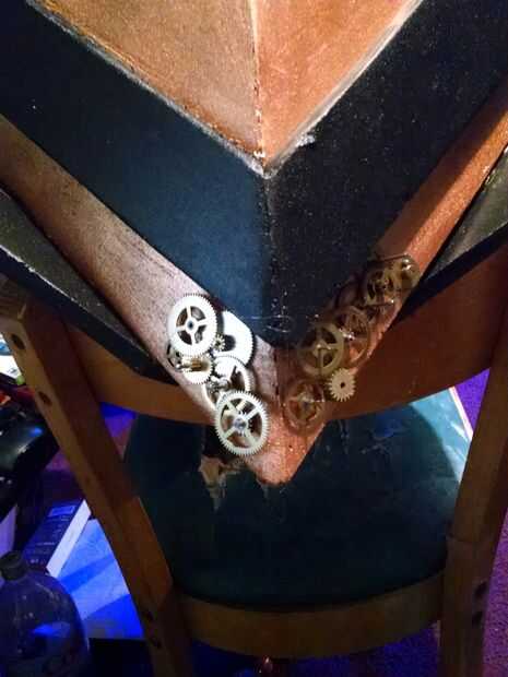 he sido querer probar algo con un estilo Steampunk. Creo que este género sea fascinante.Empecé con un marco que compré en Target. Traje casero y quita esmalte, alfombra y tablero de respaldo.Después de que quita todas las piezas delicadas y puso al l
