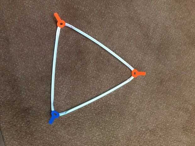 2. Coloque 1 más paja y 2 más de los 3 conectores Strawbee aspectos para crear un triángulo.