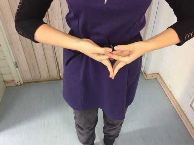 Istu ryhdikkäästi ja laita vastakkaiset etusormet peukaloihin ja muut sormet toisiinsa.