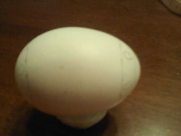 Para dibujar líneas rectas hacia abajo, alrededor e incluso diagonalmente a través de su huevo es mejor utilizar mi método de cinta métrica y hacer marcas sobre el huevo si se conectan una vez que ha terminado todas las marcas.