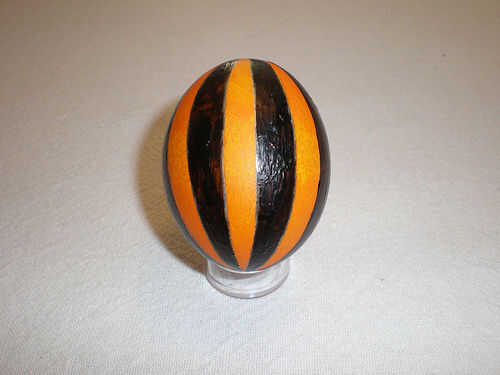 esto maravillosamente, batik elaborados huevo fue hecha usando el proceso tradicional de cera y tinte de Pysanky en un huevo de avestruz real soplado, sellado con una capa de acabado protector, claro como el cristal. Mide aproximadamente 5 1/2 pulgad